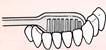歯ブラシを選ぶ際の基準としていくつかの要素がありますがもっとも大切なのは植毛部の形と大きさです。市販ブラシは以前に比べて小さめのものが多くなりましたが、まだ平均すると歯科医院専用の歯ブラシに比べてやや大きめのものが多いようです。大きさについての目安としては下の図のように下顎前歯の内側に楽に入る、すこし小さめのものがよいでしょう。あるいは2横指以内が適当です。