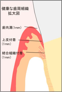 歯周病の予防が目指すものはこの『上皮付着』を失わないようにすることであり、いったん歯周病になった後に目指すものは再びこの『上皮付着』を実現させることであるといっても過言ではありません。