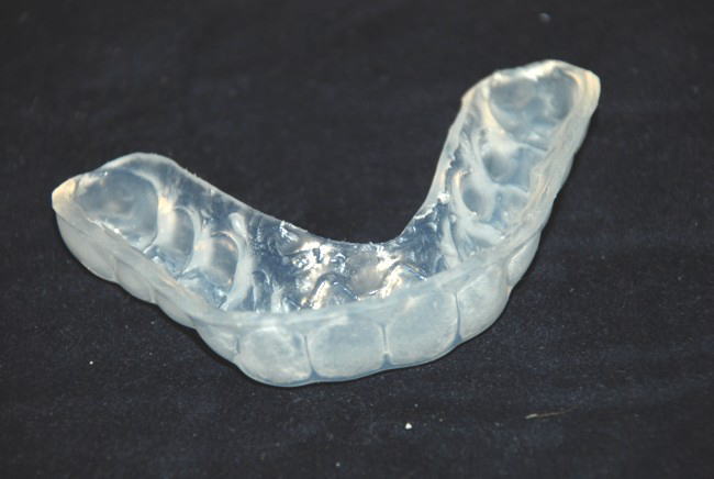 歯周病は細菌によって引き起こされますが、歯周病を増悪させる因子はいくつかあってそのひとつに咬合の異常があります。咬合異常を治すにはまず咬合調整を行ないますが、ポリカーボネート製のマウスピースを上下の歯のいずれかに装着して均等な咬合接触を保たせることで効果があがります。マウスピースは歯ぎしりや食いしばり、タッピングと呼ばれる上下の歯をカチカチ合わせ続ける習癖の治療(ナイトガード)や顎関節症の治療(バイトプレーン)に用いられます。